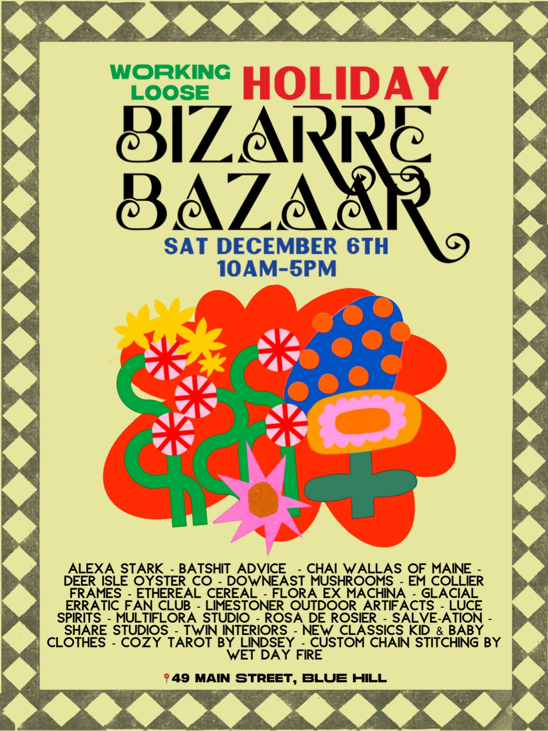 Join us for our inaugural Holiday Bazaar! We will have some of Maine's Finest Humans slinging wares and spreading cheer!